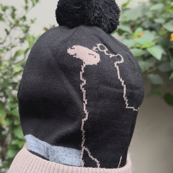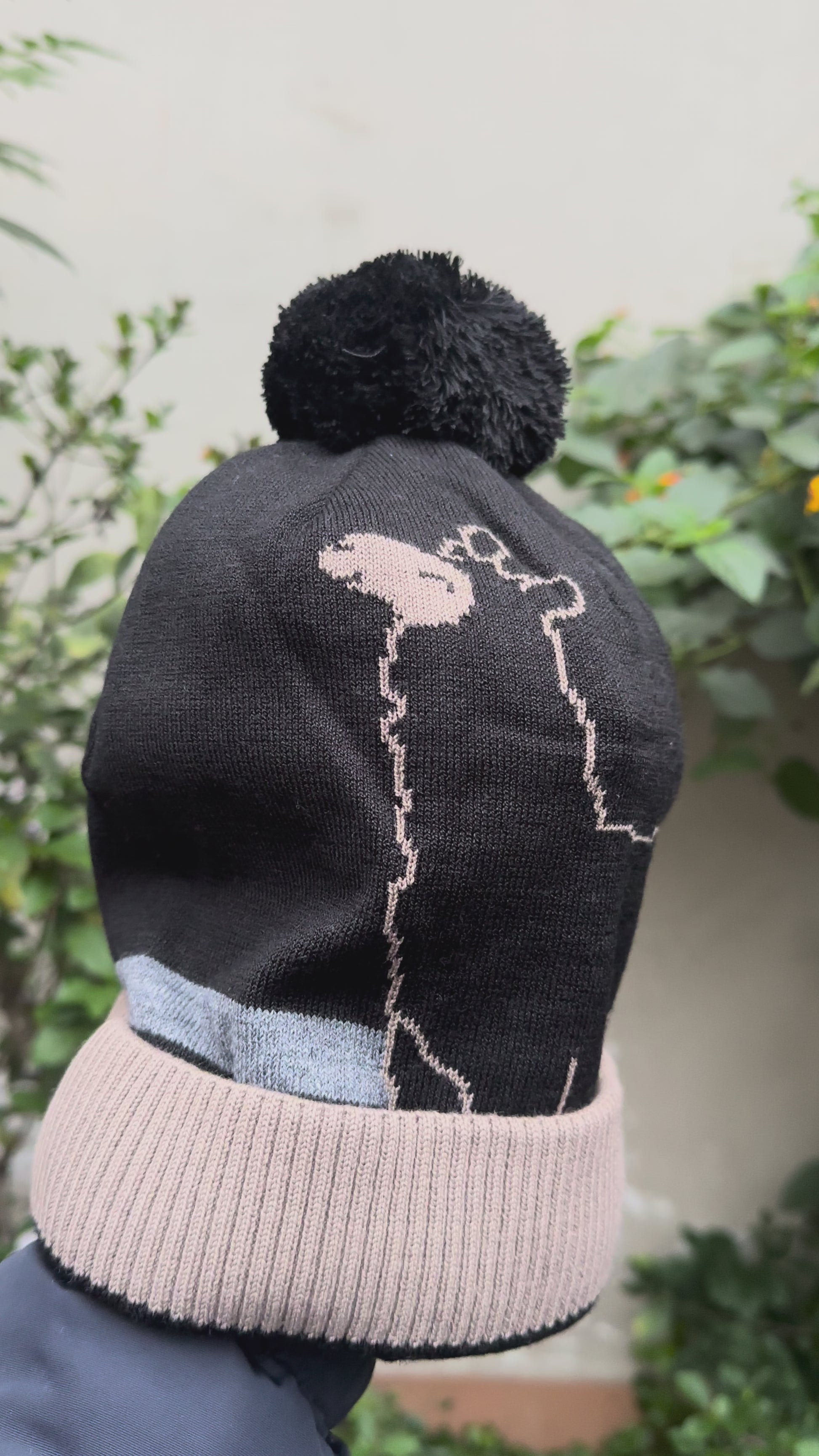 Elegante y versátil, este chullo negro con el personaje Kusi resalta la esencia de la llama viajera. Ideal para quienes buscan un diseño minimalista pero cargado de simbolismo andino. Hecho para resistir el frío con comodidad, es un gorro andino moderno que conecta tradición con moda urbana.