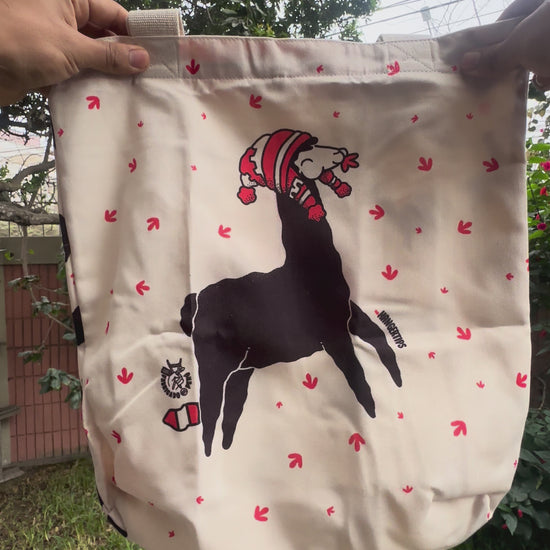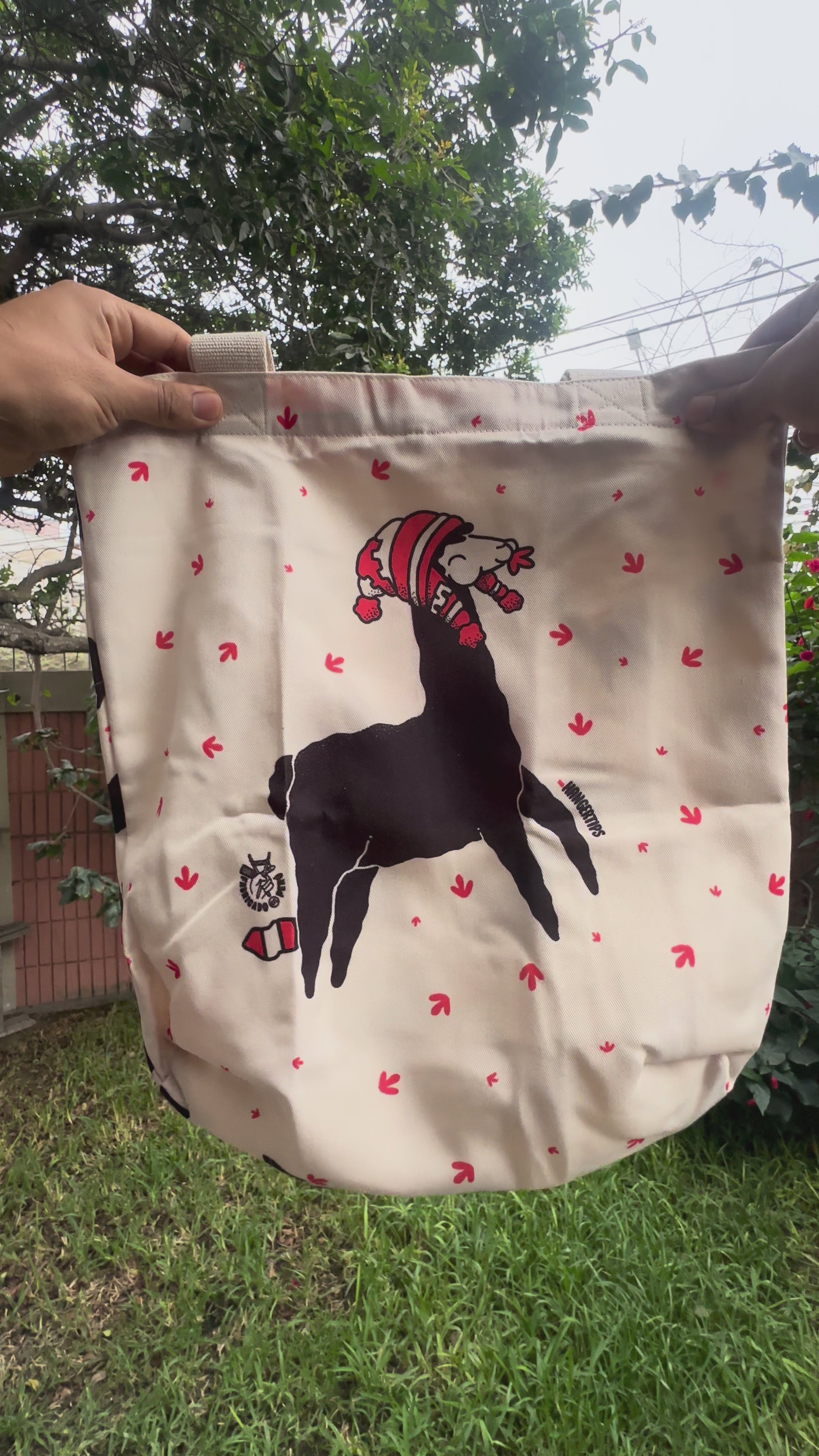 Totebag con diseños interactivos, mensajes culturales y personajes de la marca.