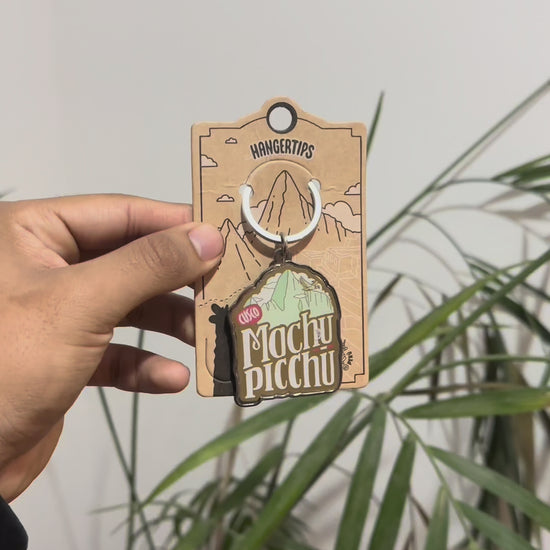 Un homenaje a la maravilla del mundo, este llavero de resina combina tonos verdes y marrones con la palabra Cusco en rojo. Resistente y con un diseño llamativo, es un recuerdo auténtico para viajeros que buscan llevar consigo la magia de Machu Picchu.