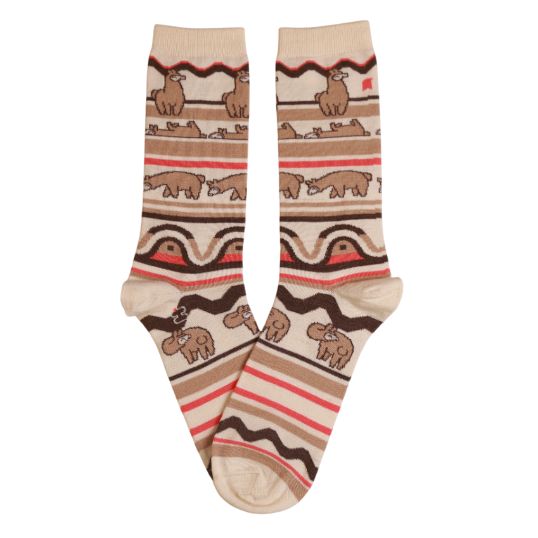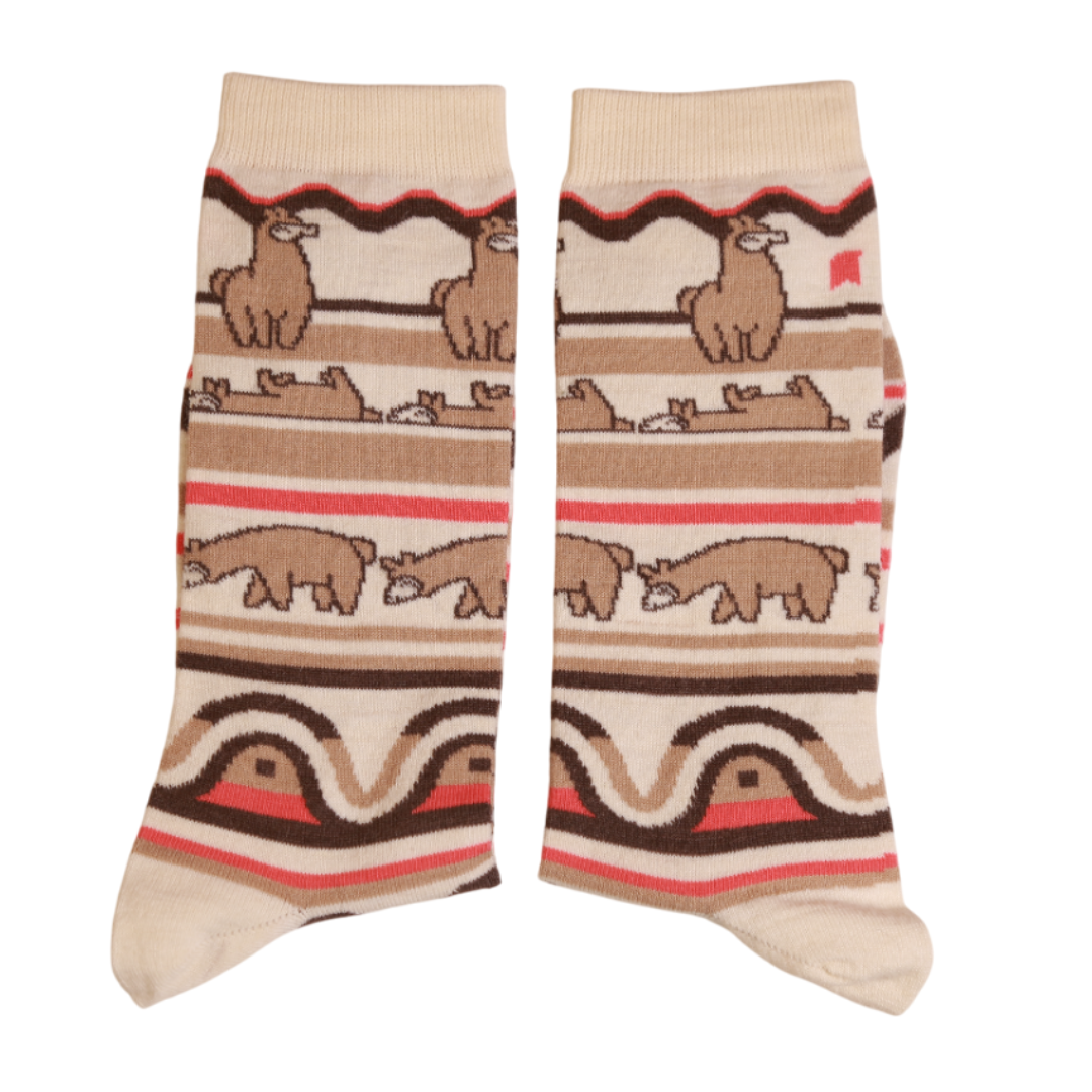 Nuestras medias están inspiradas en la cultura y los paisajes del Perú. El modelo Ari Awaq celebra la tradición textil andina con un diseño lleno de patrones geométricos y detalles que evocan nuestras raíces. Hechas de algodón, son cómodas, duraderas y perfectas para regalar o llevar contigo como recuerdo auténtico de tu viaje. Disponibles en talla adulto y con envíos a todo el Perú.