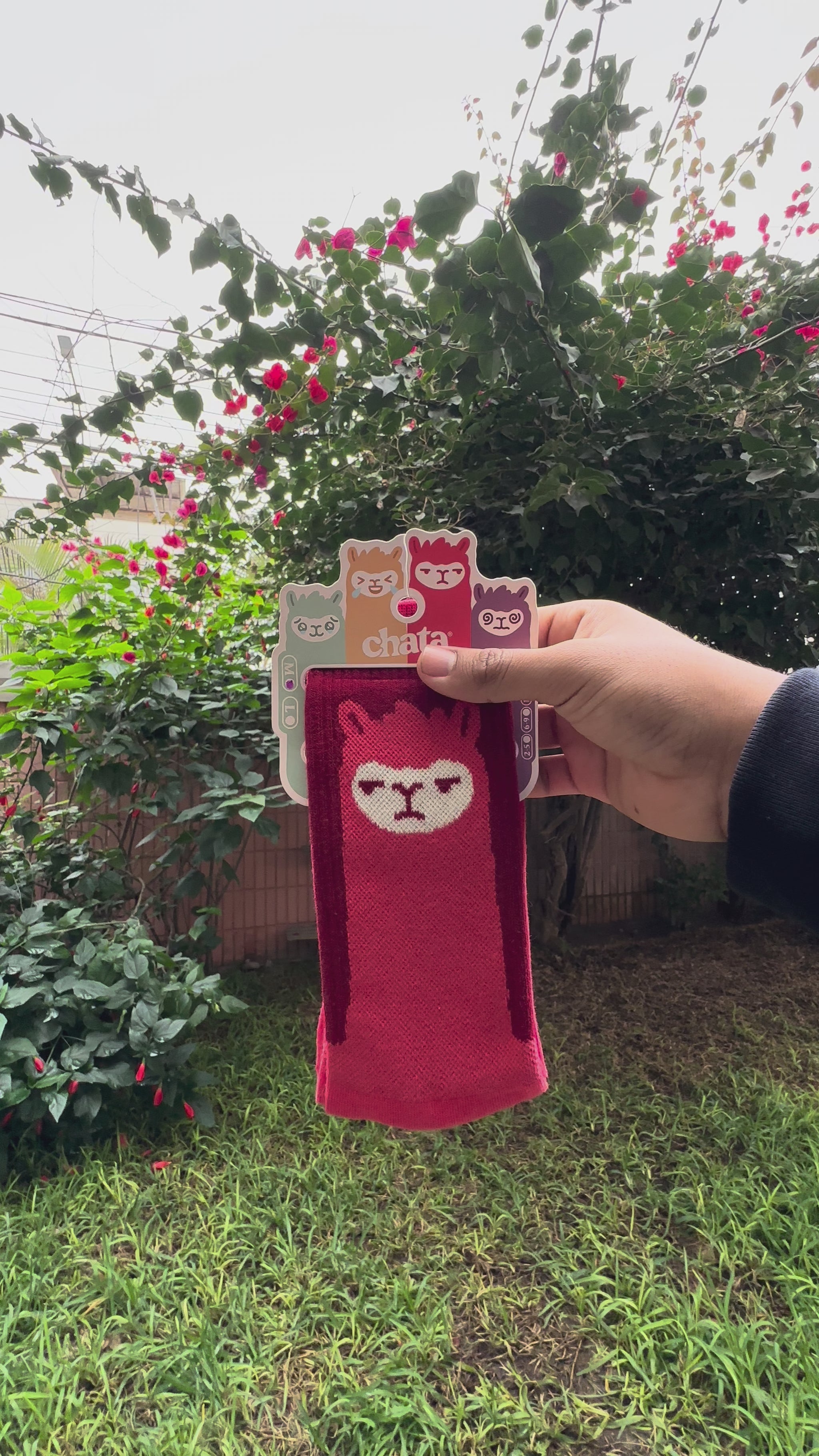 Nuestras medias están inspiradas en la cultura y los paisajes del Perú, y este modelo presenta a Chata en un rojo intenso que destaca por su fuerza y carácter. Hechas de algodón, son cómodas, duraderas y perfectas para regalar o llevar contigo como recuerdo auténtico de tu viaje. Disponibles en talla adulto y con envíos a todo el Perú.