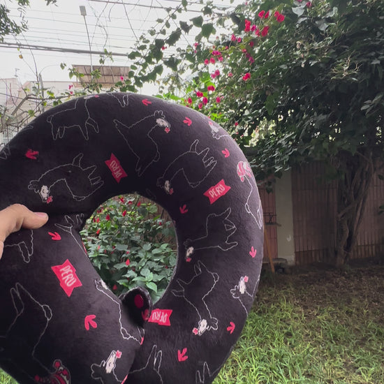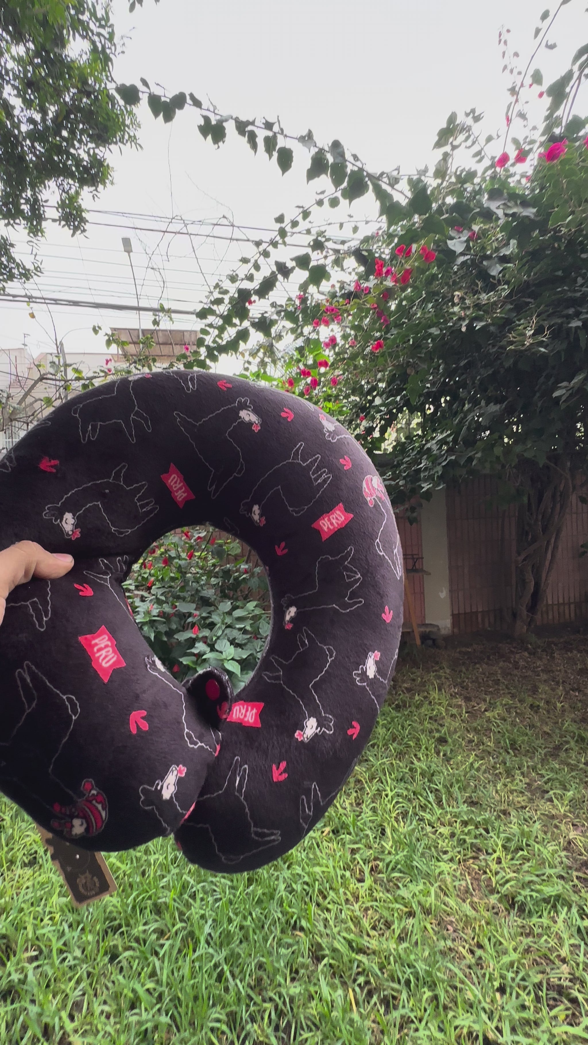 Cojín cervical en forma de U con Kusi, la llama viajera. Ideal para avión, bus o carro: ayuda a mantener el cuello alineado y reduce la tensión al dormir sentado. Estampado andino (negro/rojo/blanco) que conecta con la cultura peruana sin perder el look moderno. Ligero y fácil de llevar en mochila. Envíos a todo el Perú.