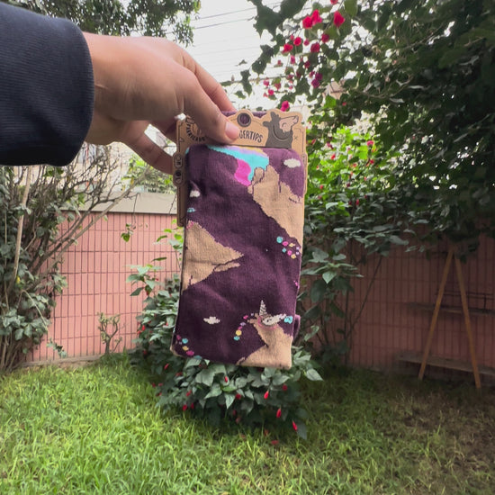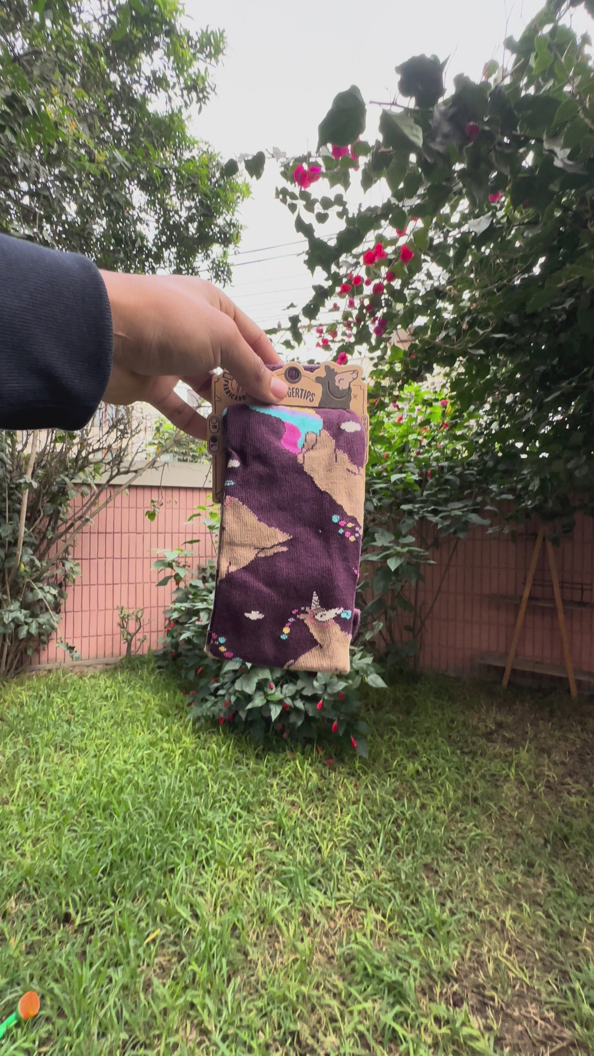 Nuestras medias están inspiradas en la cultura y los paisajes del Perú, y este diseño une la ternura de la llama con la fantasía del unicornio en un estilo único. Hechas de algodón, son cómodas, duraderas y perfectas para regalar o llevar contigo como recuerdo auténtico de tu viaje. Disponibles en talla adulto y con envíos a todo el Perú.