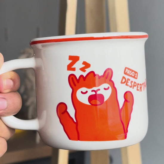 ¡Paso 1: Despertar! Chata lo tiene claro en esta taza llena de humor y energía. Perfecta para quienes empiezan el día con un buen chisme chisme. Su diseño divertido la convierte en un souvenir peruano único y coleccionable que aporta personalidad a tu cocina.